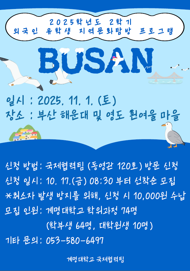 2025학년도 2학기 외국인 유학생 지역문화탐방 프로그램(국제협력팀)